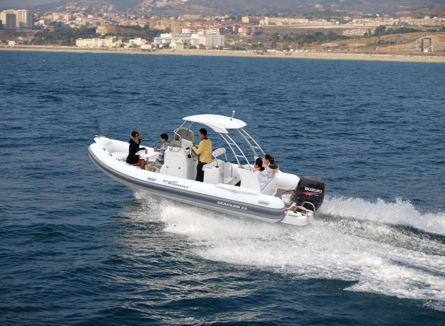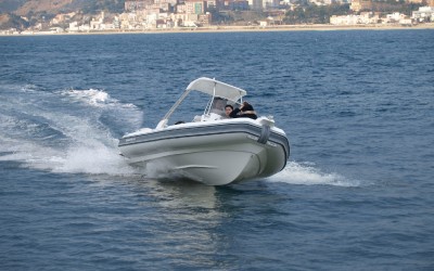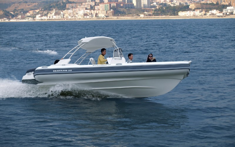 * Heavy-duty fiberglass deep-vee hull;