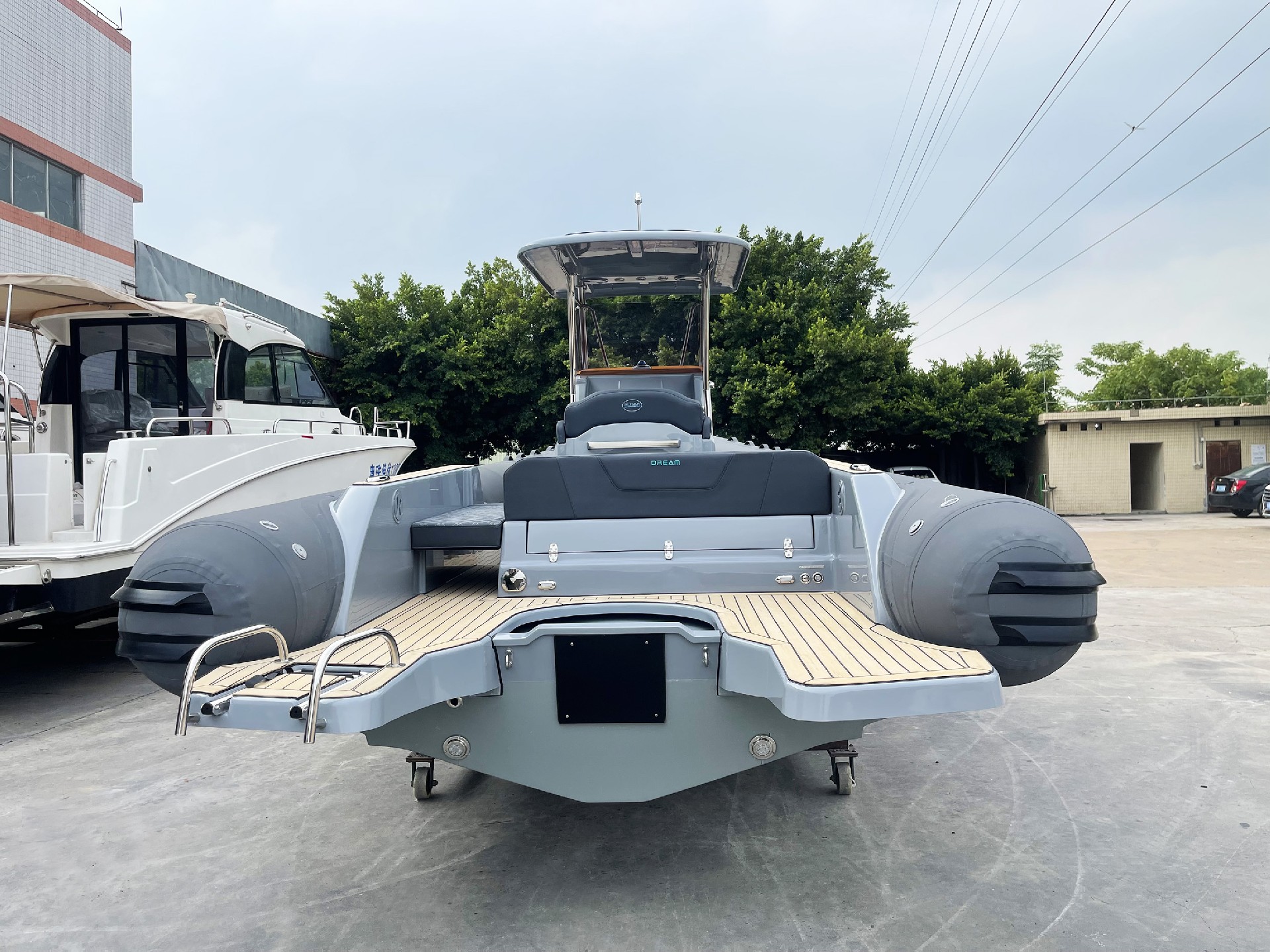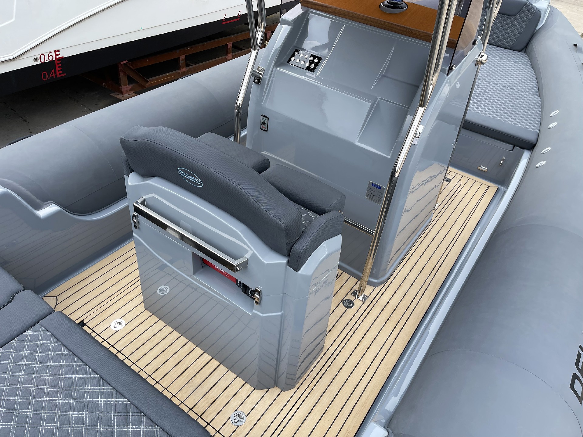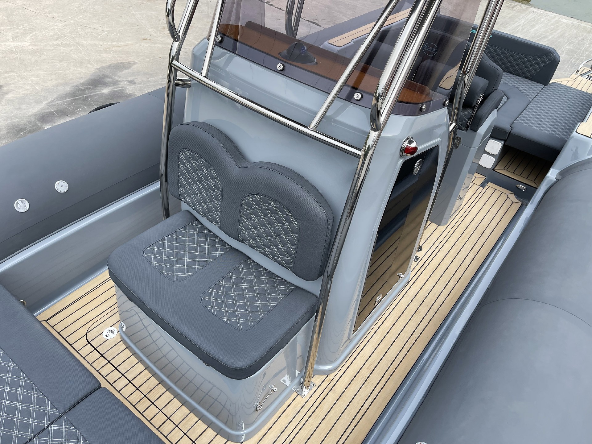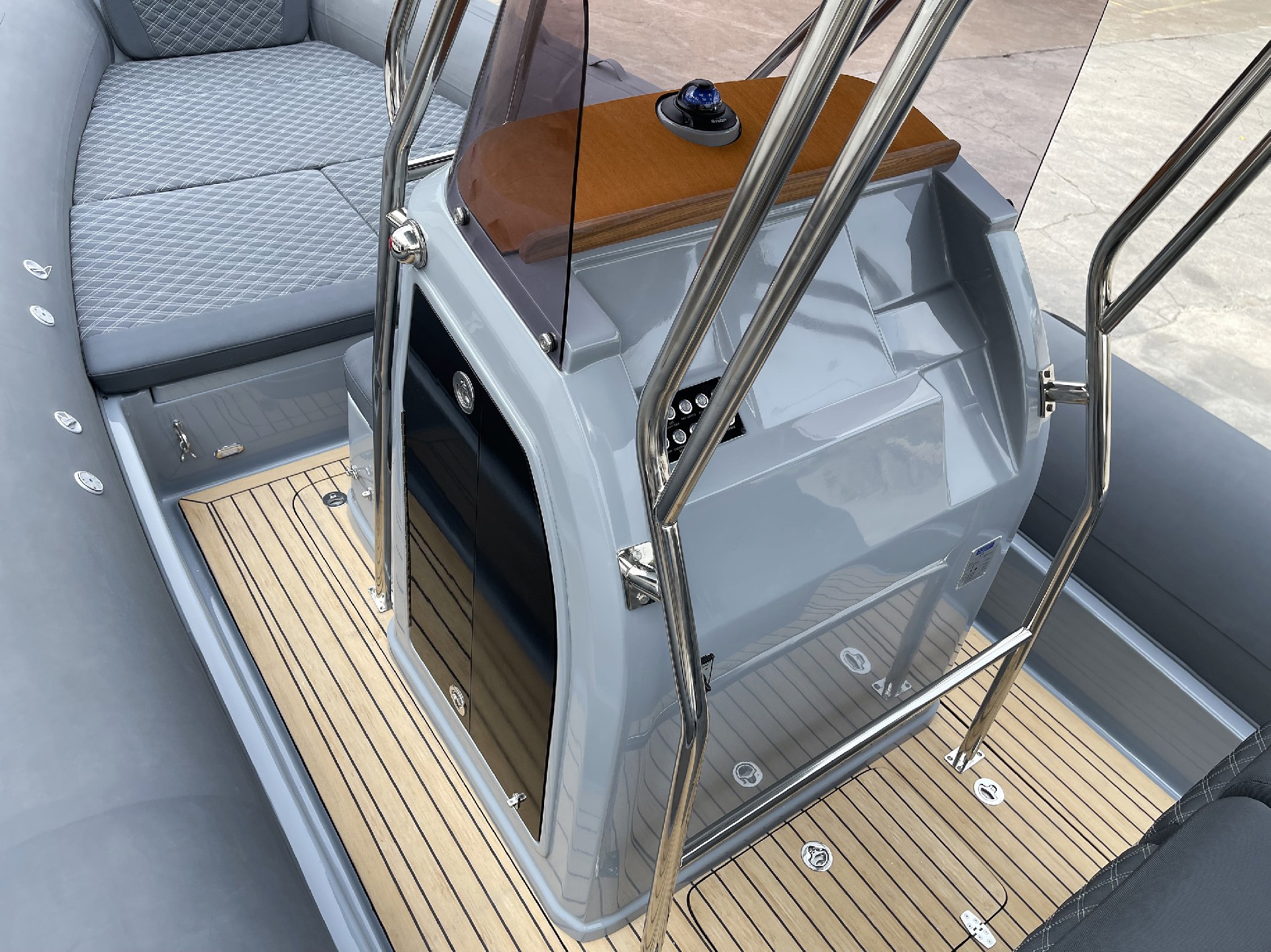 * Molded fiberglass console with Perspex windshield and S.S. handrail;