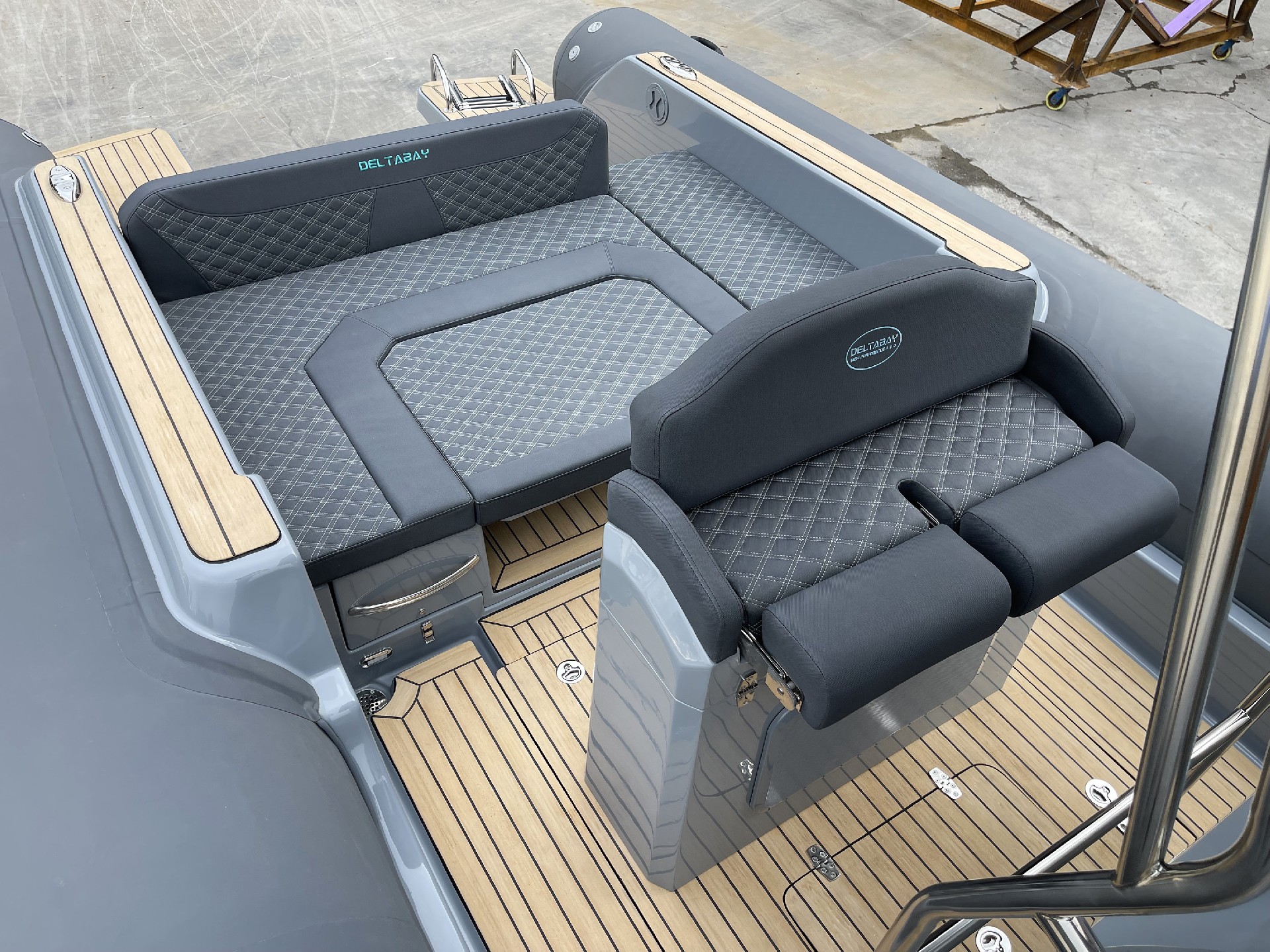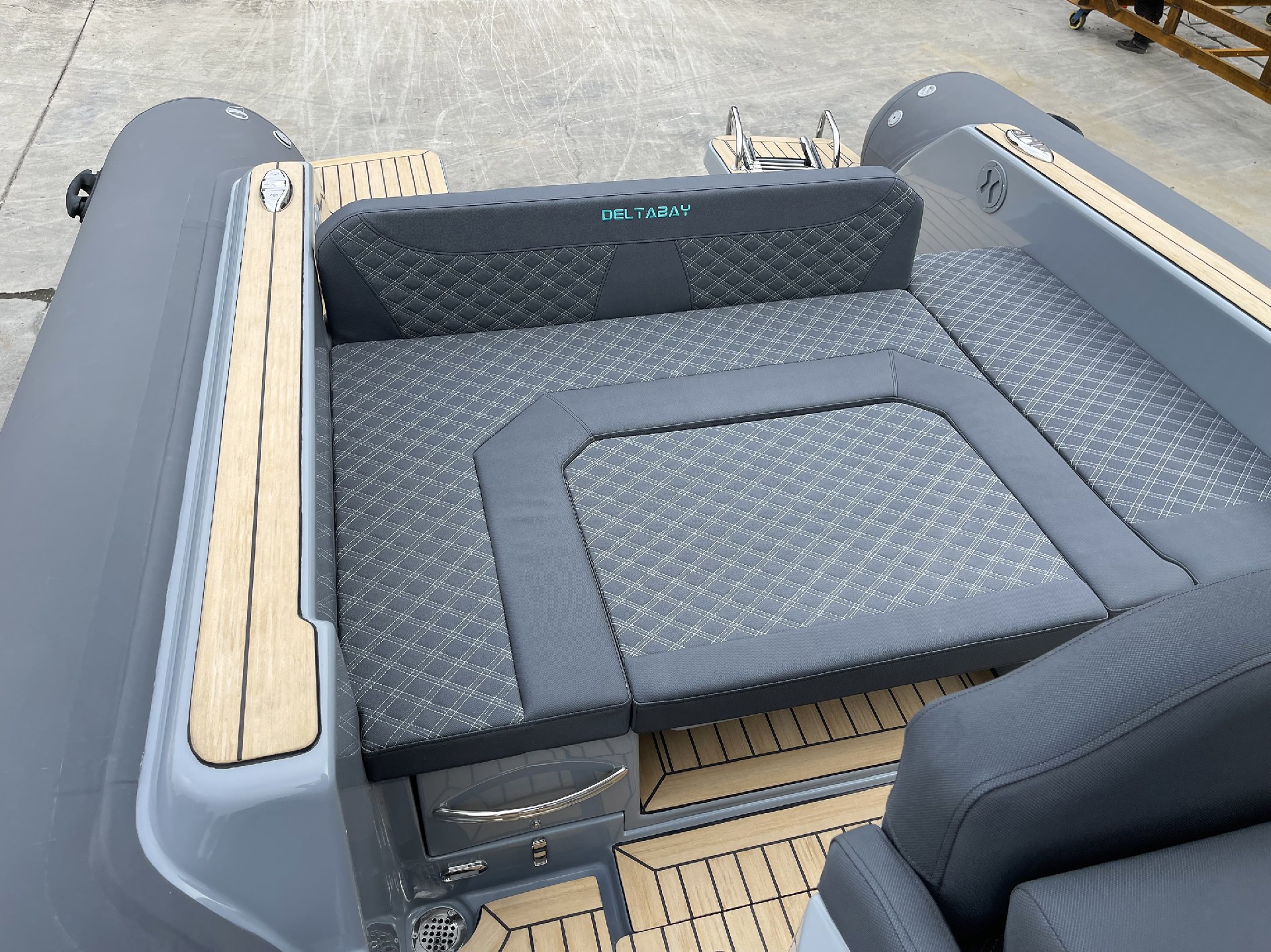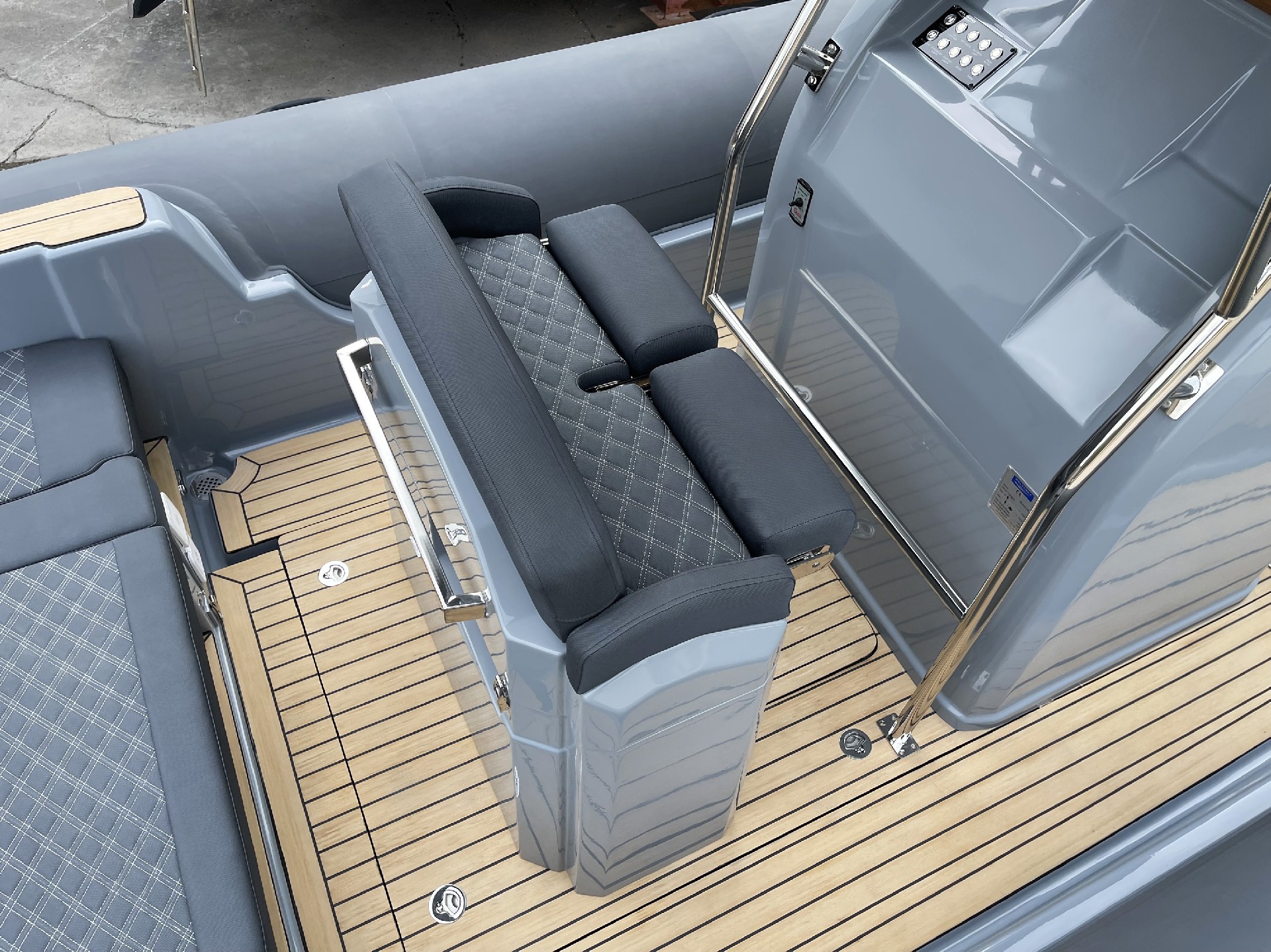 * Molded fiberglass anchor platform with S/S anchor roller and cleats;